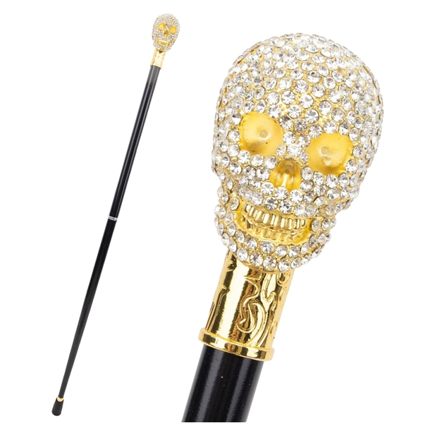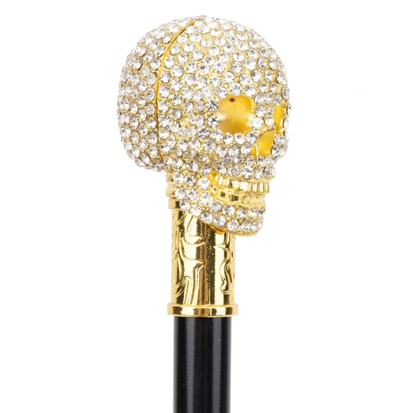 Baston elegant cu mâner cap de craniu – finisaj auriu cu cristale strălucitoare