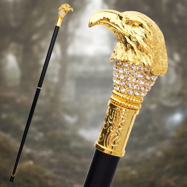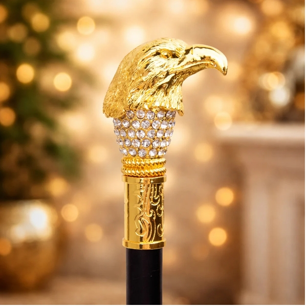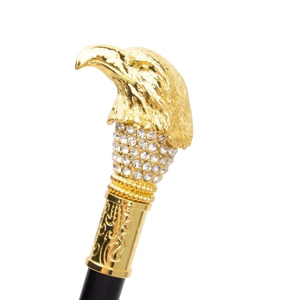 Mânerul în formă de cap de vultur, cu finisaj auriu și elemente decorative strălucitoare, oferă un aspect impunător și sofisticat. Acest detaliu conferă bastonului un aer nobil și îl face să iasă în evidență în orice colecție.
