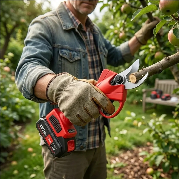 Designul ergonomic asigură confort în utilizare, iar lama din oțel carbon garantează tăieri curate și durabilitate ridicată. Sistemul cu doi acumulatori oferă autonomie extinsă, fiind potrivit pentru lucrări de durată în grădină sau livadă.