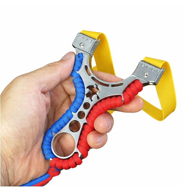 Această praștie este concepută pentru utilizatori care caută precizie, rezistență și control optim. Cadrul metalic solid oferă stabilitate ridicată, iar mânerul ergonomic, îmbrăcat în paracord antiderapant, asigură o prindere confortabilă și sigură în timpul utilizării.