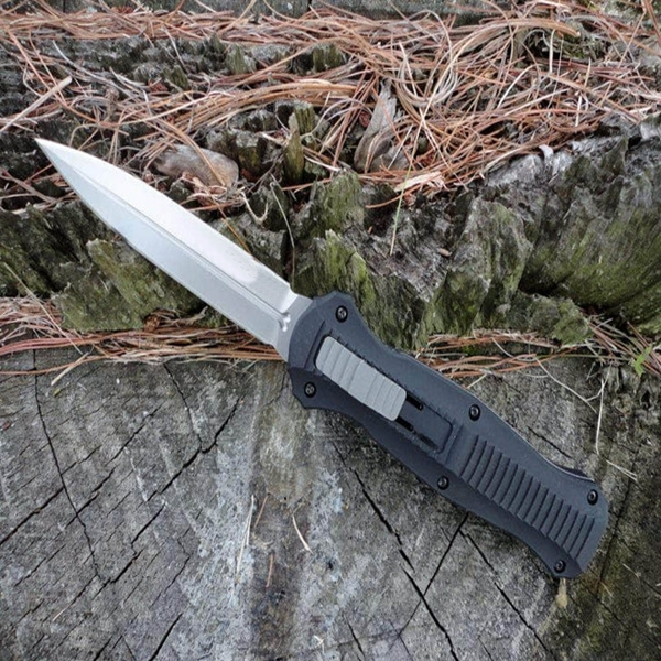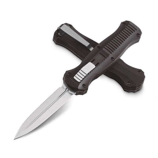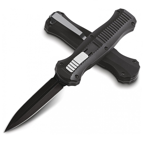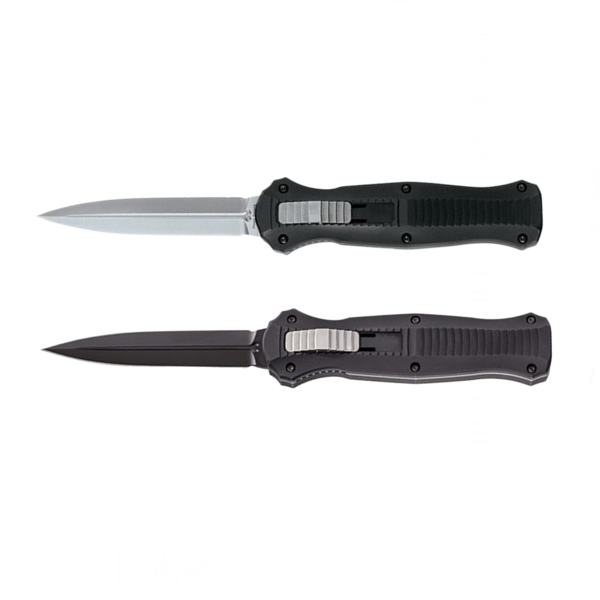 Deschiderea prin presiune se realizează folosind un buton mare cromat cu defilare frontală, pur și simplu împingeți înainte pentru a scoate lama înainte; Lama se retrage în mâner apăsând butonul înapoi.