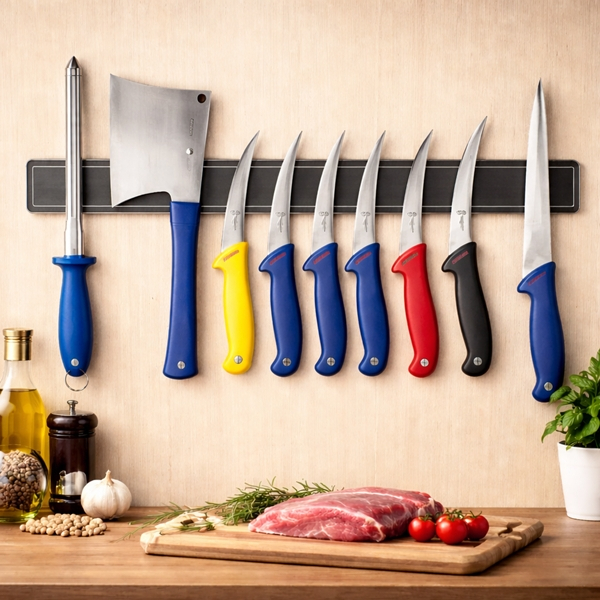 Set profesional măcelărie 8 piese, DEPOX®, cutite din otel inoxidabil cu carbon, pentru dezosare și filetare, multicolor