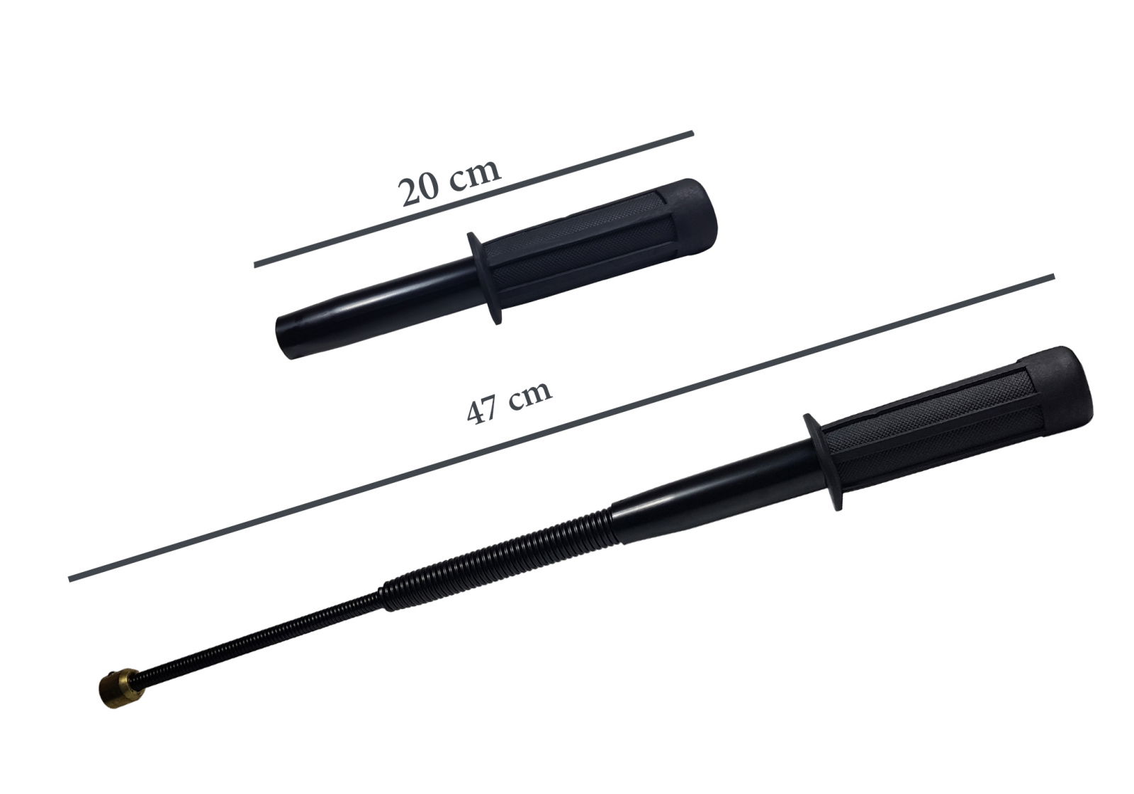 Baston telescopic flexibil de autoaparare, poate avea loc in buzunar, prinsa la curea, sau in portiera de la masina economisand astfel spatiul, usor si la indemana.