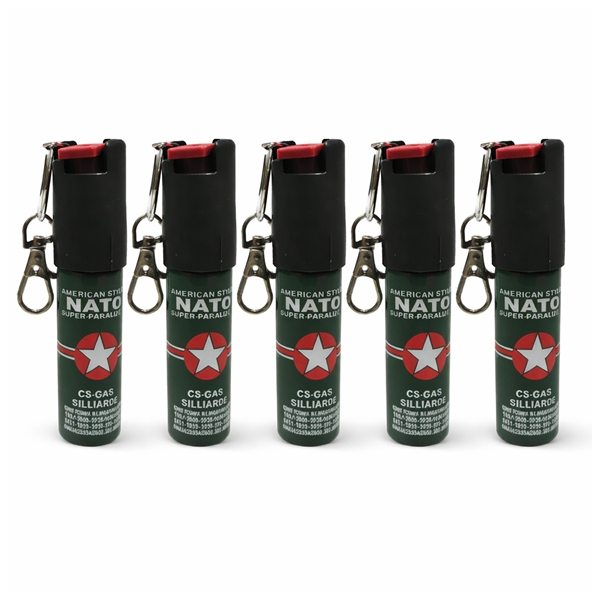Setul conține cinci spray-uri paralizante NATO compacte, tip breloc, ideale pentru autoapărare rapidă și eficientă. Datorită dimensiunii reduse, pot fi atașate ușor la chei, geantă sau rucsac, fiind mereu la îndemână în situații de urgență.